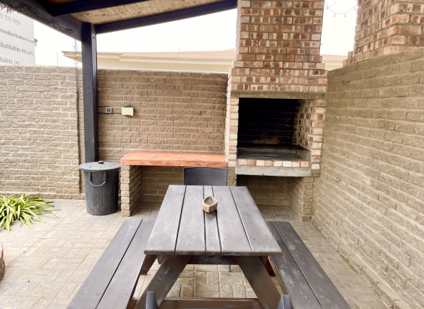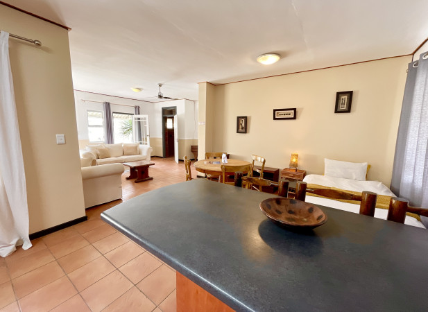 The Bushbabies Executive Apartment is a comfortable, slightly elevated retreat ideal for families or small groups, featuring two bedrooms and one bathroom plus a private outside braai area with loungers — perfect for relaxed alfresco evenings. Centrally located with safe, enclosed parking, the apartment places shops, cafés and local attractions within easy reach and is just a one-minute walk from the sea, making it a superb base for morning beach walks and sunset moments while offering extra space and privacy for a relaxed stay.