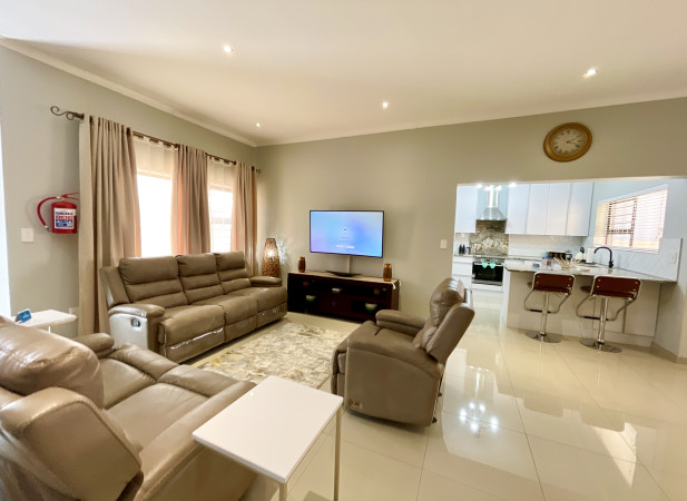 Discover the perfect blend of comfort, convenience, and coastal charm at Omuhama Ocean Escape. This modern 3-bedroom, 2-bathroom holiday home sleeps up to 6 guests, making it ideal for families or groups looking to unwind by the sea. Enjoy relaxed living with a stylish indoor braai area, spacious lounge, and a friendly garden for outdoor moments. A double garage ensures secure parking, while the home’s central location places you just 2 minutes away from shops and local amenities for ultimate convenience. Whether you’re planning a weekend getaway or an extended holiday, Omuhama Ocean Escape offers everything you need for a comfortable and memorable stay in Swakopmund.